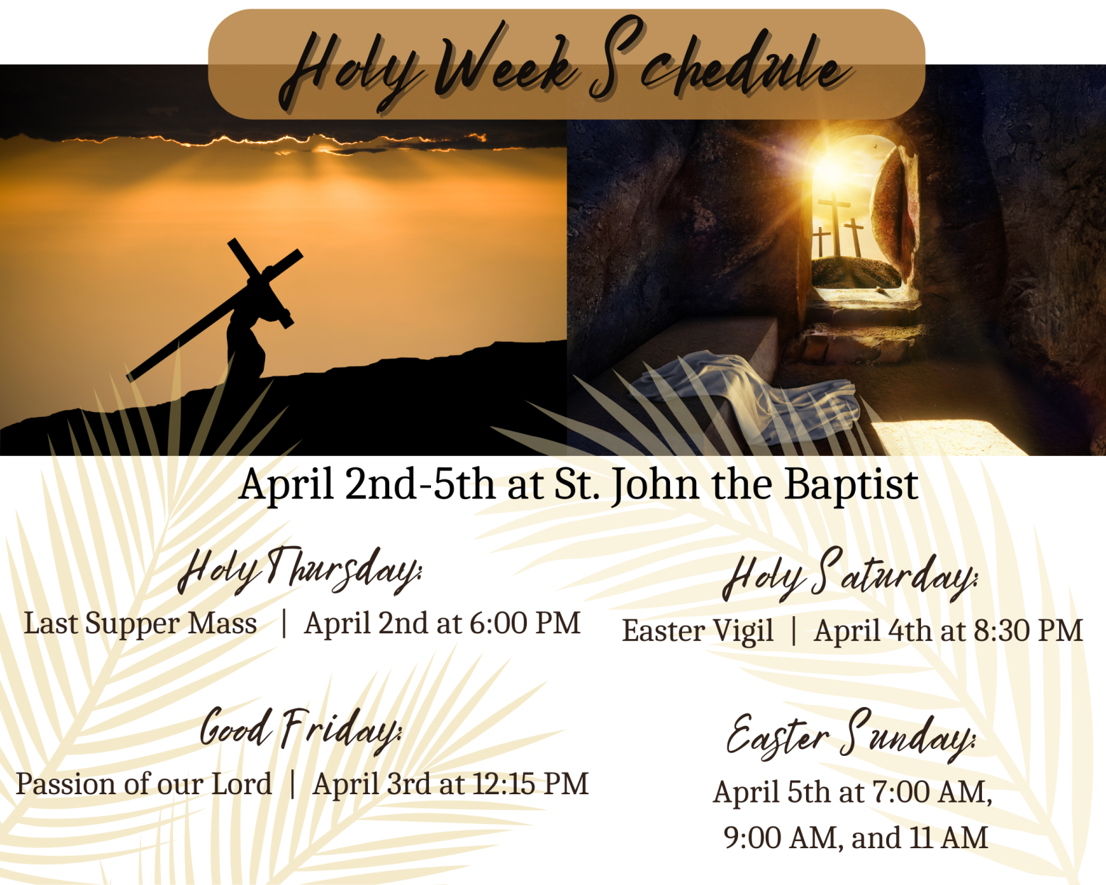 Welcome to St. John the Baptist Catholic Church! Ever since 1877 this parish has been assisting souls in their quest for deeper union with God. Pope John Paul II called the parish a “school of prayer” and St. John’s is committed to promoting growth in holiness in every state in life. Each of us is called…